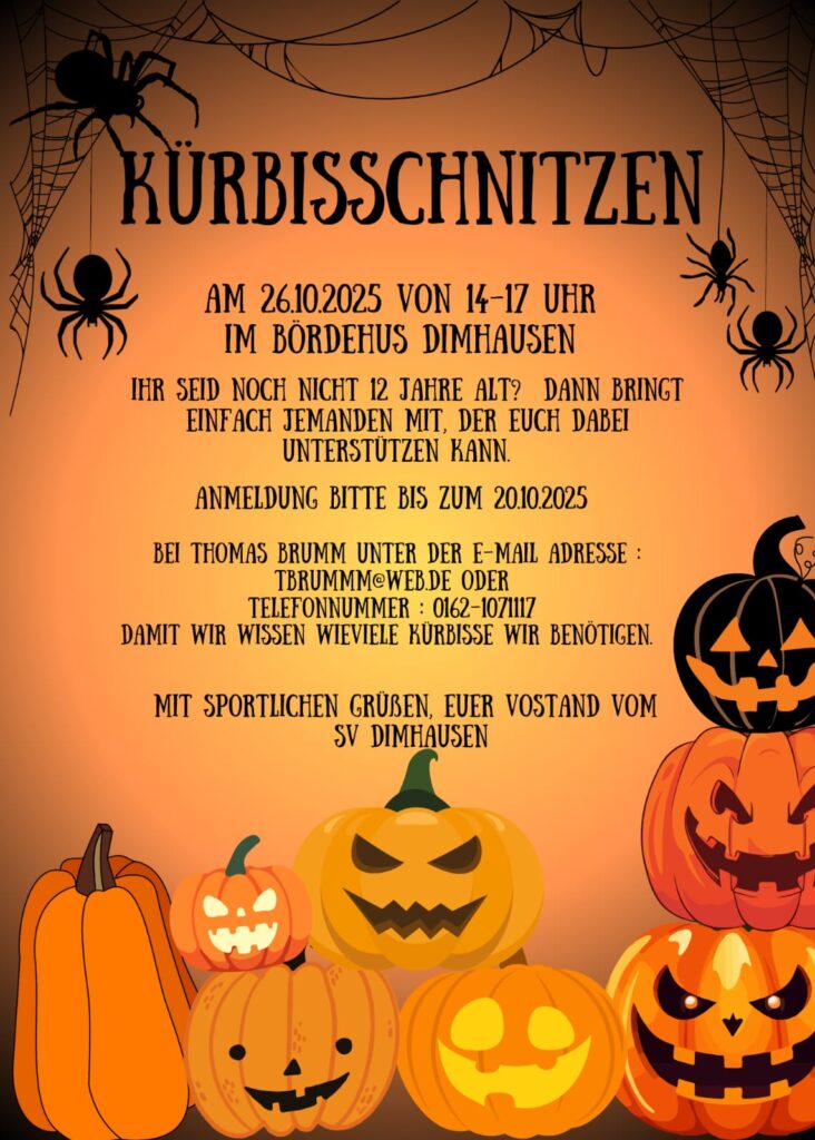 Kommt gerne am 26.10.2025 in der Zeit von 14-17 Uhr vorbei, sucht euch einen Kürbis aus und gestaltet ihn nach Lust und Laune mit den schönsten Gesichtern und Motiven!